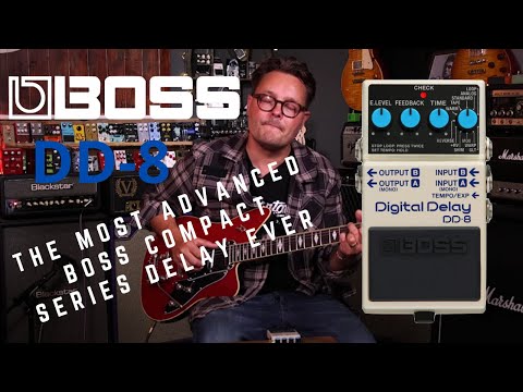 The Boss DD-8 Digital Delay is Boss's most comprehensive compact delay pedal — eleven delay modes, true stereo operation, up to 10 seconds of delay time, and a built-in looper with 40 seconds of recording time, all in the standard Boss compact enclosure. Introduced in 2019, it brought a level of depth and versatility to the format that had previously required a much larger pedal.